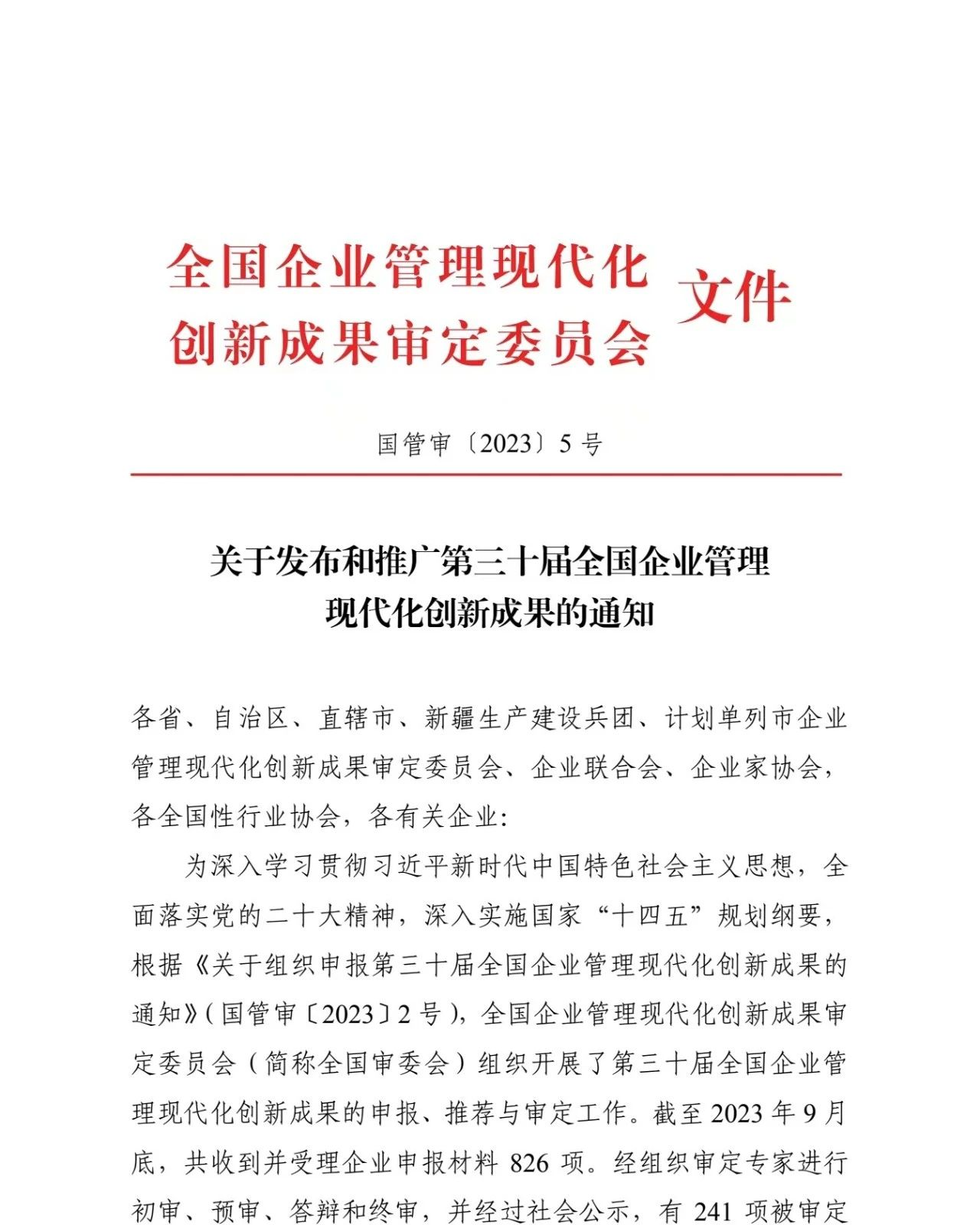第三十屆全國企業(yè)管理現(xiàn)代化創(chuàng)新成果名單