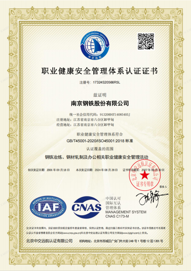 相關(guān)政策:南京鋼鐵股份有限公司職業(yè)健康與安全聲明
