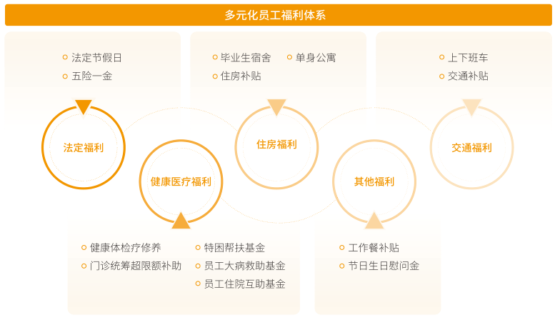 公司構(gòu)建全面多元的福利保障體系,除依法為員工繳納法定五險(xiǎn)二金,還提供補(bǔ)充醫(yī)療、住房保障、交通補(bǔ)貼、餐飲補(bǔ)貼等福利。
