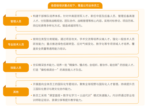 公司持續(xù)推進(jìn)員工發(fā)展與經(jīng)營管理深度融合,將各類培訓(xùn)項(xiàng)目與核心業(yè)務(wù)目標(biāo)、生產(chǎn)效率提升、技術(shù)升級和安全績效等關(guān)鍵經(jīng)營指標(biāo)建立更直接的對應(yīng)關(guān)系,明確各類培訓(xùn)項(xiàng)目的預(yù)期貢獻(xiàn)場景,并納入關(guān)鍵指標(biāo)與績效評價(jià)體系,以結(jié)果數(shù)據(jù)進(jìn)行量化評估與閉環(huán)迭代。