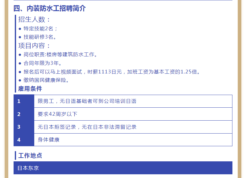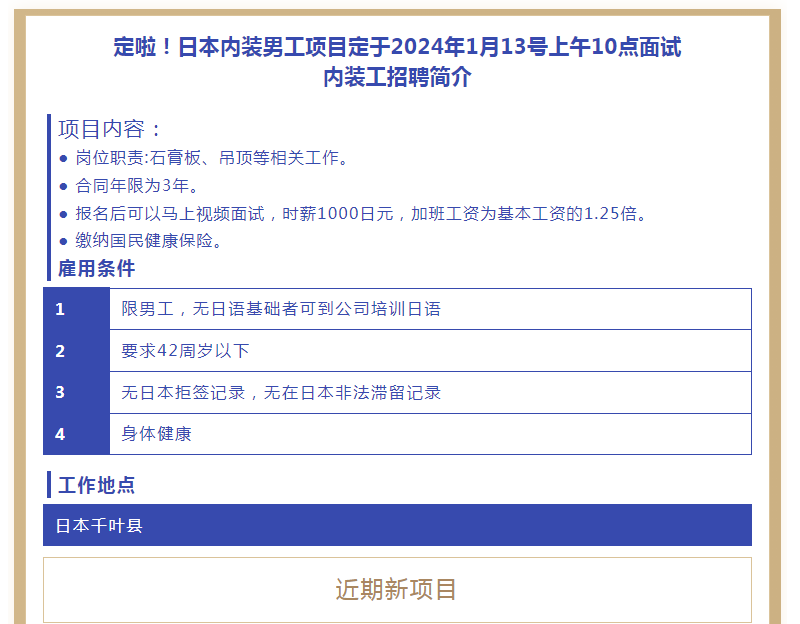 【恒德國際】日本內裝男工定于1月13號面試啦